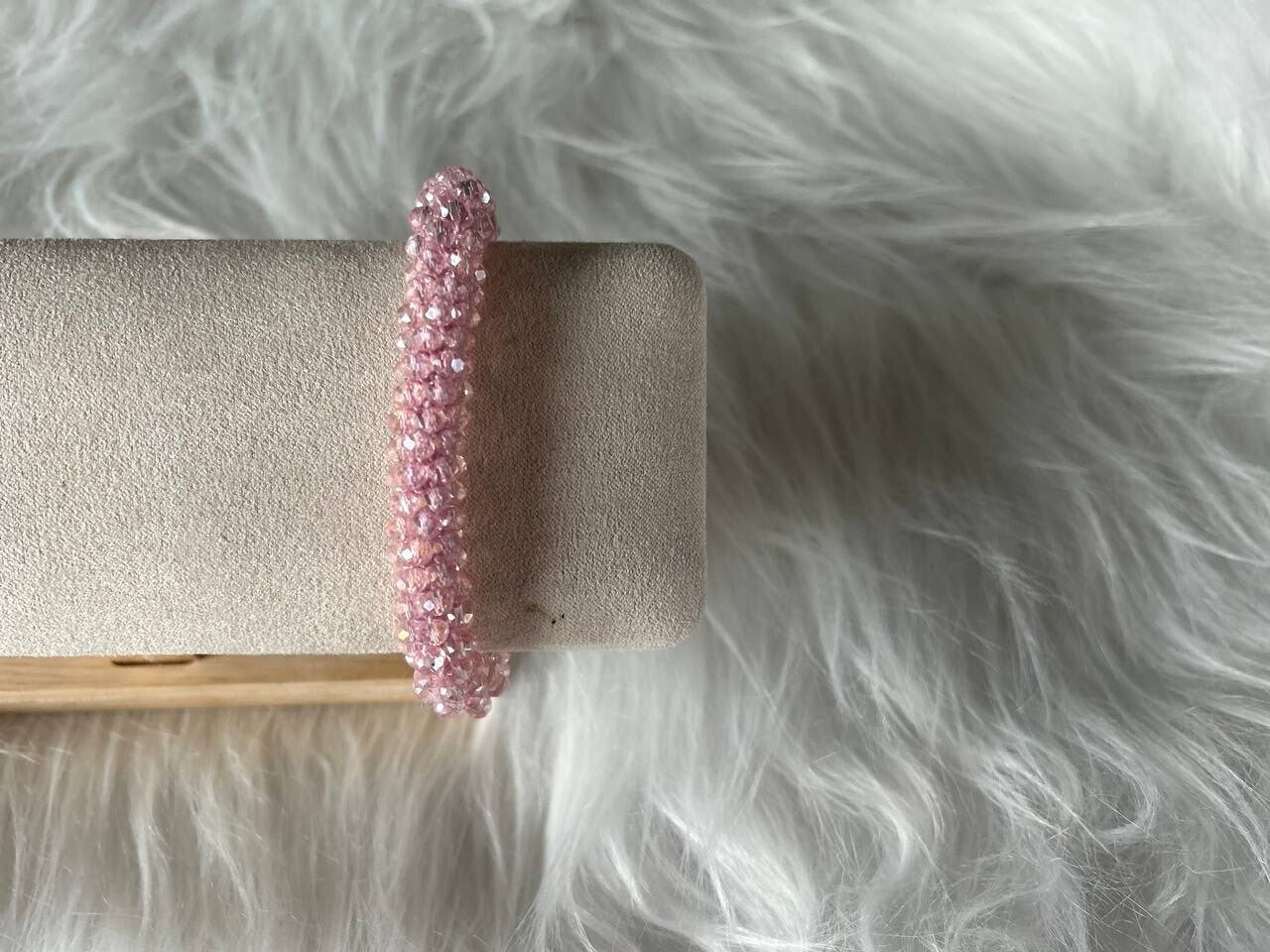 Een armband van glaskraaltjes in de kleur rose pink.