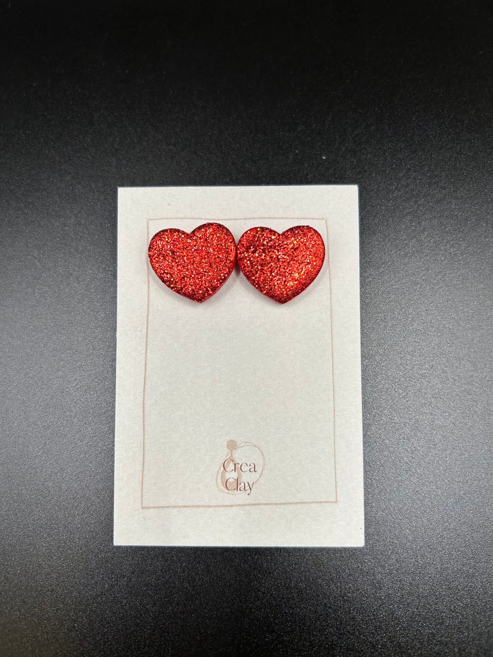 Studs in een hartvorm in prachtige kerstrood met glitter