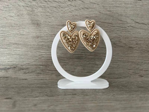 Een elegant beigehartje met prachtige stukjes gebroken glas in een chamagnekleur.