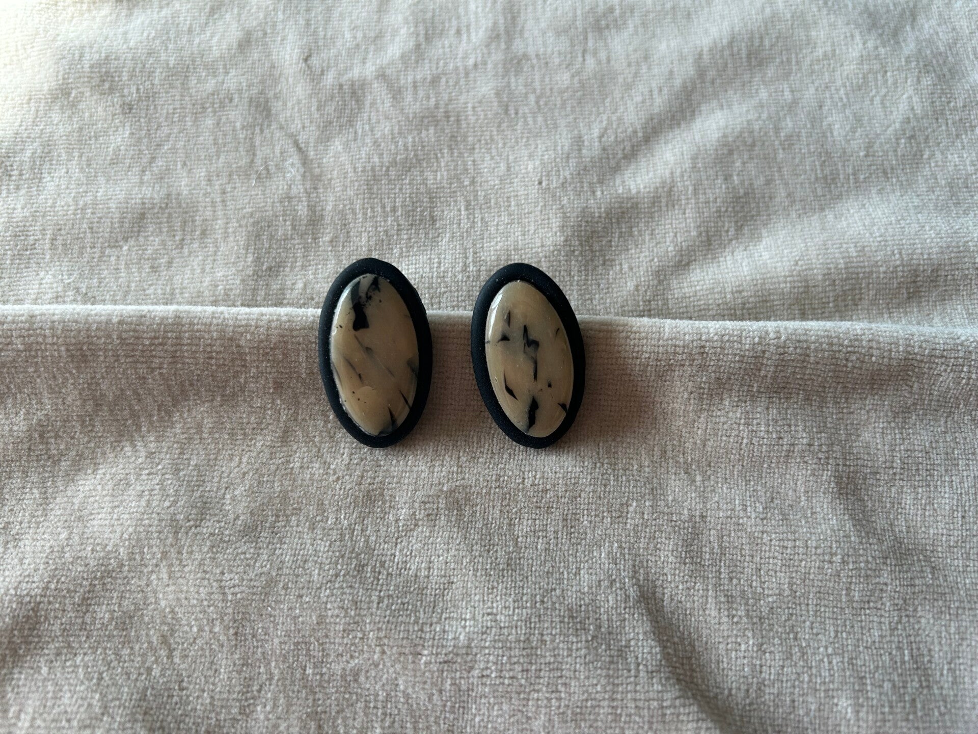 Vina is een bijzondere stud. Doorzichrige klei gemeng met beige en zwart geeft dit prachtige effect.