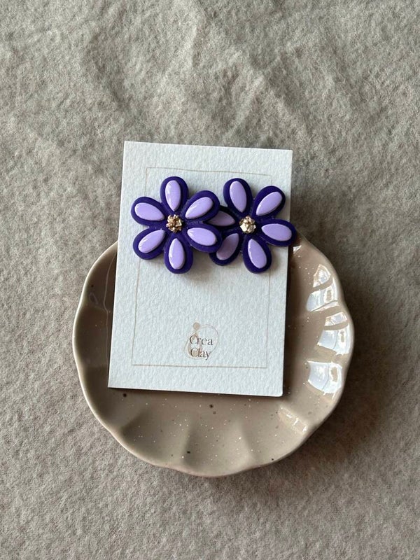 Een prachtige stud in de vorm van een bloem in paars en lavendel.